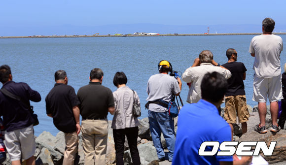 샌프란시스코 국제공항 활주로의 바로 건너편인 베이프론트 공원에는 휴일을 맞아 산책을 나온 사람들로 가득했다. 이들은 걱정스러운 표정으로 바다 건너편의 사고 현장을 바라봤다. 사고가 일어난 지점이 활주로이기 때문에 현지 언론도 사고현장 접근이 제한돼 공원에서 현장 분위기를 전했다.
