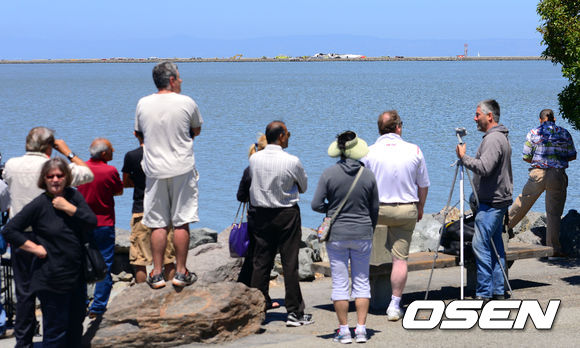 활주로가 보이는 베이프론트 파크에서 많은 시민들이 사고 현장을 바라보고 있다 . / soul1014@osen.co.kr