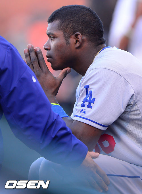 경기종료 후 다저스 푸이그가 4타수 무안타 4삼진에 아쉬워하고 있다. / soul1014@osen.co.kr