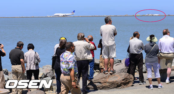 샌프란시스코 공항 활주로가 보이는 베이프론트 파크에 현지인들이 사고현장을 바라보고 있다.. / soul1014@osen.co.kr