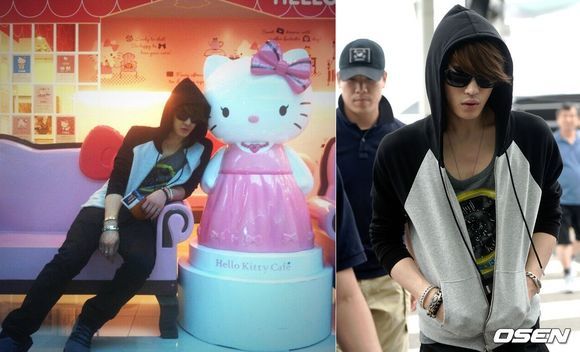 한편 김재중은 이날 CF 촬영을 위해 인천국제공항을 통해 프랑스로 출국했다. 트위터에 올라온 키티 동반촬영 사진은 김재중의 공항패션과 일치한다.