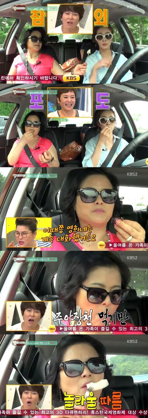 이날 아침일찍부터 스케줄이 있어 피곤한 딸을 위해 어머니는 시종일관 먹을거리를 꺼내 박은영의 입에 넣어주며 잠을 깨게 했다.