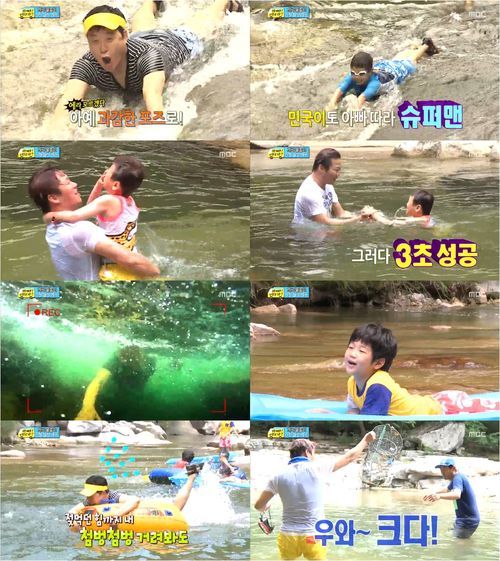 7일 방송된 MBC 예능프로그램 ‘일밤-아빠 어디가’는 남덕유산 월성계곡에서 물놀이를 즐기는 스타와 스타자녀들의 모습이 그려졌다. 아직 한여름은 아니지만 시원한 계곡을 만난 이들은 기쁨을 감추지 못했다.