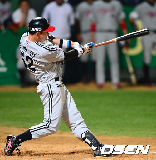 LG 내야수 손주인이 넥센 김병현에게 동점 솔로포를 터뜨렸다.
