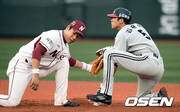 7일 오후 서울 목동 야구장에서 열린 '2013 한국야쿠르트 세븐 프로야구' 넥센 히어로즈와 LG 트윈스의 경기, 3회초 무사 1루 LG 김용의가 2루 도루를 성공하고 있다.