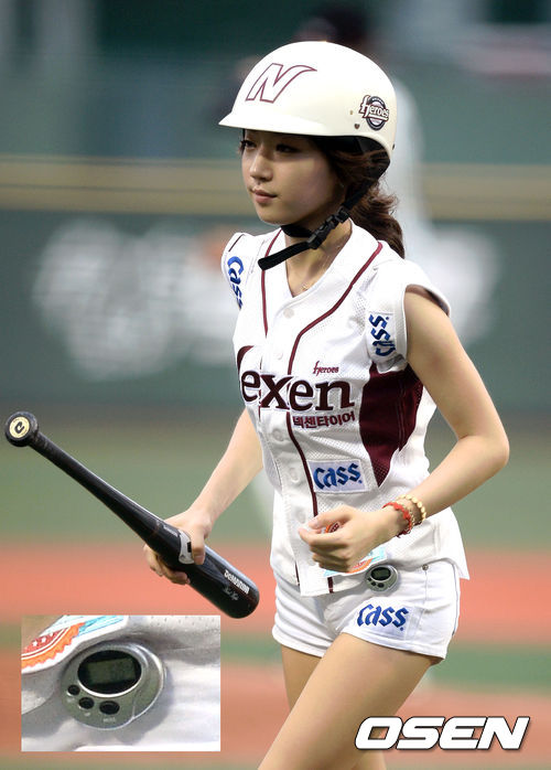 배트걸이 차고있는 만보기가 눈에 띈다.
