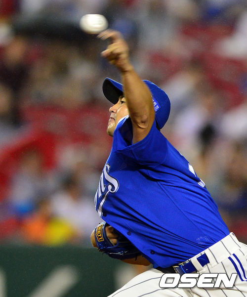 7일 오후 서울 잠실야구장에서 열린 '2013 한국야쿠르트 세븐 프로야구' 두산 베어스와 삼성 라이온즈의 경기, 삼성 선발 장원삼이 역투하고 있다.