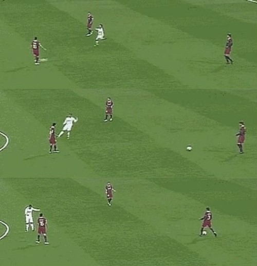 호날두는 상대팀의 공을 뺏기 위해 뛰어다니지만 레알 수비수들은 정교한 삼각패스로 호날두를 따돌렸고 결국 호날두는 짜증을 내며 폭발했다. 호날두는 양팔을 벌리며 "날 약올리는 거야"라는 머리를 흔들었다.
