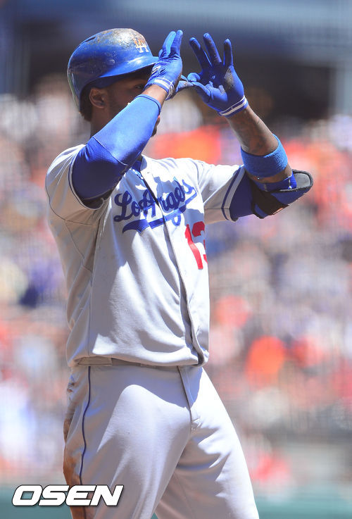 [OSEN=샌프란시스코, 곽영래 기자] 8일(한국시간) 미국 캘리포니아주 샌프란시스코에서 열린 2013 메이저리그 샌프란시스코 자이언츠와 LA 다저스의 경기, 2회초 다저스 선두타자 라미레스가 3루타를 날리고 세레모니를 하고 있다.