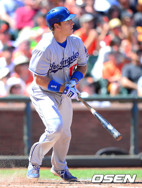[OSEN=샌프란시스코, 곽영래 기자] 8일(한국시간) 미국 캘리포니아주 샌프란시스코에서 열린 2013 메이저리그 샌프란시스코 자이언츠와 LA 다저스의 경기, 9회초 2사 만루 다저스 A.J.엘리스가 주자일소 2루타를 날리고 있다.
