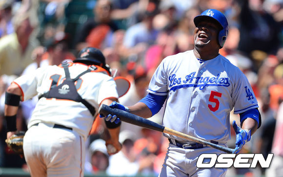 [OSEN=샌프란시스코, 곽영래 기자] 8일(한국시간) 미국 캘리포니아주 샌프란시스코에서 열린 2013 메이저리그 샌프란시스코 자이언츠와 LA 다저스의 경기, 7회초 찬스를 놓친 다저스 우리베가 아쉬워하고 있다