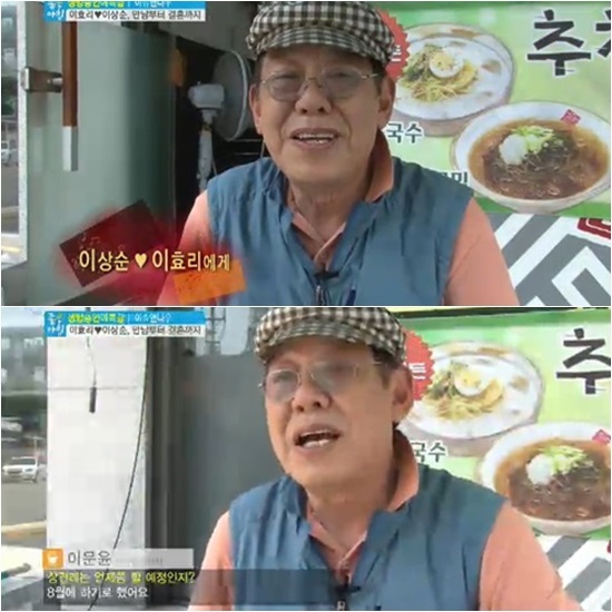 이상순 아버지는 "8월에 상견례 할 예정이다"는 계획을 밝혔다. 또 그는 예비 며느리 이효리에 대한 칭찬을 아끼지 않았다. 이상순의 아버지는 "이효리가 좋다"라며 "가끔 밥 먹으러 오는데 설거지도 하고 과일도 직접 깎는다. 참 잘 한다. 우리가 보는 연예인 이효리와 다르다"며 예비며느리의 됨됨이를 높이 샀다.