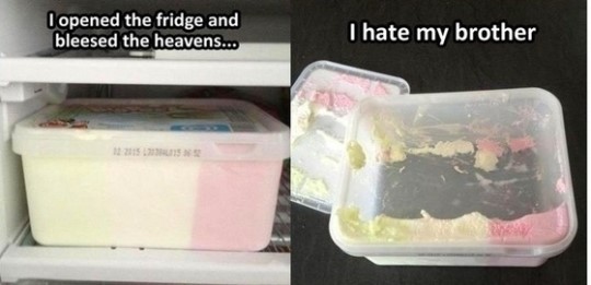 하지만 막상 뚜껑을 열어보면 '반전'이 기다리고 있다. 밖에서 봤을 때는 가득 차있는 것만 같았던 아이스크림 통이지만, 안쪽은 거의 다 퍼먹고 끝부분만 남아있기 때문. 절묘한 속임수에 글쓴이는 아이스크림을 모두 먹은 것으로 추정되는 오빠에 대해 분노를 터뜨리고 있다.