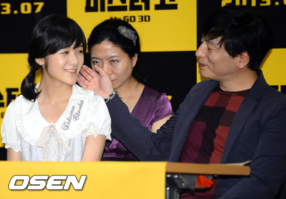 8일 오후 서울 코엑스 메가박스에서 진행된 영화 '미스터 고'(김용화 감독) 언론배급시사회에서 서교가 김용화 감독을 바라보고 있다.