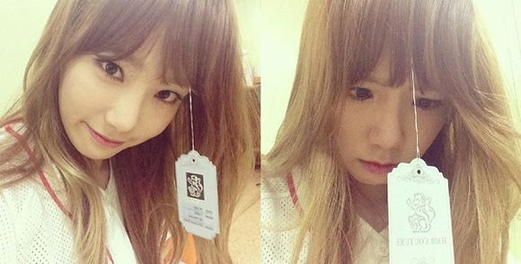 이어 태연은 "으잉?"이라는 짭을 글과 함게 두 번째 사진을 게재했다. 알고보니 그 택은 태연이 착용한 가발에 달린 것이었던 것.