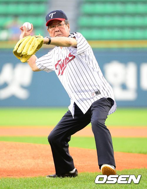 9일 오후 서울 잠실야구장에서 열린 2013 한국야쿠르트 세븐프로야구 LG 트윈스와 NC 다이노스의 경기, 경기에 앞서 배우 최불암이 시구를 하고 있다.