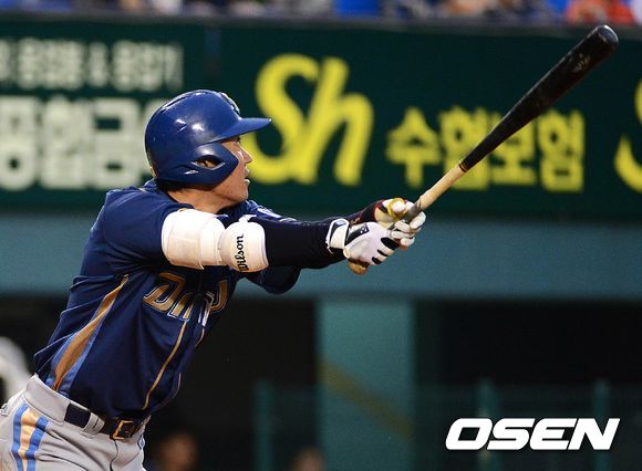 9일 오후 서울 잠실야구장에서 열린 2013 한국야쿠르트 세븐프로야구 LG 트윈스와 NC 다이노스의 경기, 3회초 1사 3루에서 NC 박정준이 희생플라이를 날리고 있다.