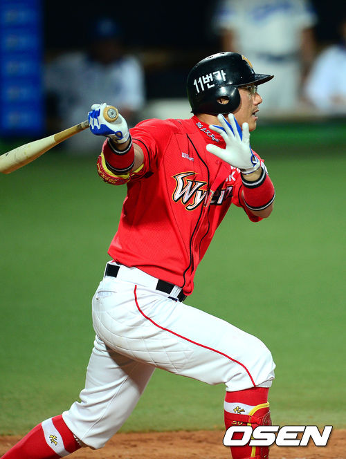 9일 오후 대구 시민운동장에서 열린 '2013 한국야쿠르트 세븐프로야구' 삼성 라이온즈와 SK 와이번스의 경기, 5회초 무사 2루 SK 박정권이 1타점 적시타를 때리고 있다.