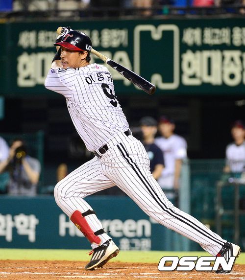 9일 오후 서울 잠실야구장에서 열린 2013 한국야쿠르트 세븐프로야구 LG 트윈스와 NC 다이노스의 경기, 6회말 2사 3루에서 LG 이병규가 좌전 적시타를 치고 있다.