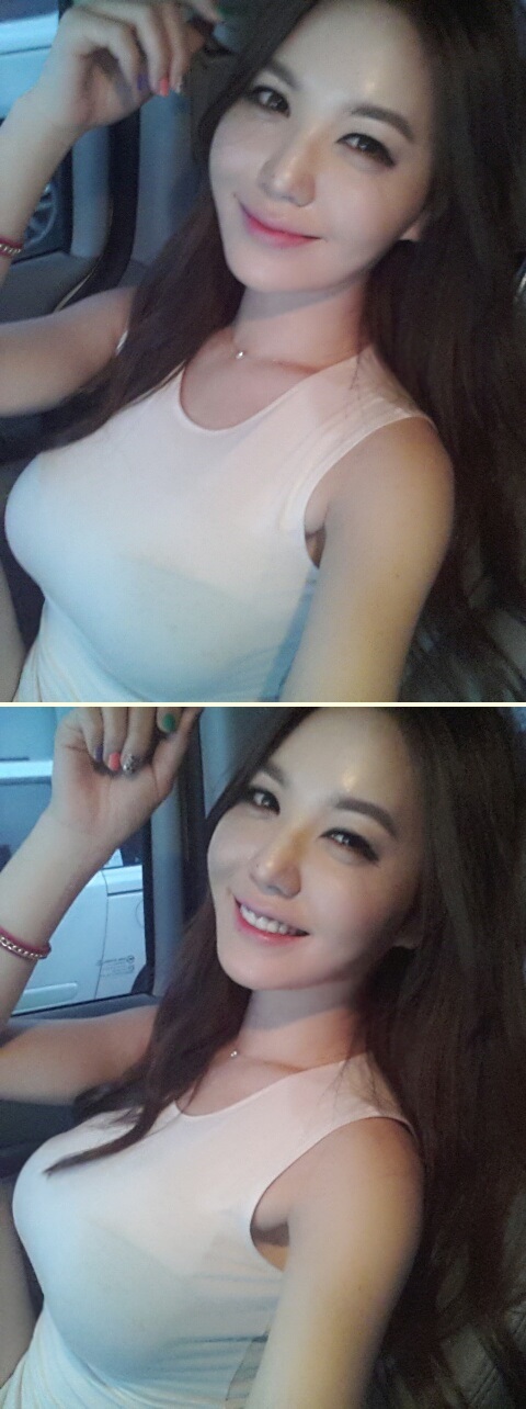 자신의 승용차 안에서 찍은 것으로 보이는 사진 속에는 활짝 웃고 있는 강예빈의 모습이 앉혀 있다.