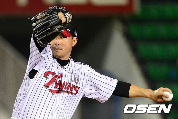 9일 오후 서울 잠실야구장에서 열린 2013 한국야쿠르트 세븐프로야구 LG 트윈스와 NC 다이노스의 경기, 10회초 2사 1루에서 LG 봉중근이 힘차게 공을 던지고 있다.
