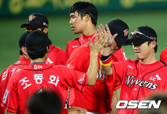 경기 종료 후 SK 선수들이 기뻐하고 있다. / youngrae@osen.co.kr