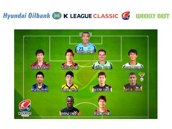 미드필더 부문에서는 전체 밸런스를 잡으려는 노력에도 일순간 번뜩였던 '패스마스터' 송진형(제주)과 종횡무진 필드를 누볐고 페널티킥을 얻어내는 활약으로 극적 무승부를 이끈 이종호(전남), 주력을 앞세워 수비 뒷공간을 파고드는 움직임으로 상대 수비진 위협한 한교원(인천)이 페드로와 함께 선정됐다.