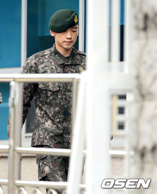 이날 비는 전역 후 취재진 앞에서 웃음기 없는 얼굴로 1분 정도의 짧은 전역 소감 후 자리를 황급히 떠나 눈길을 끌었다. 이는 최근 불거진 연예병사 근무실태 논란 등과 관련, 좋지 않은 분위기 때문이다.
