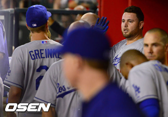 10일(한국시간) 미국 애리조나 피닉스 체이스필드에서 열린 2013 MLB 애리조나 다이아몬드백스와 LA 다저스의 경기,7회말 이닝종료 후 다저스 선발투수 놀라스코가 그레인키와 하이파이브를 하고 있다.