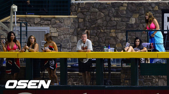 체이스필드 외야에 위치한 수영장에서 야구팬들이 수영복을 입은 채 야구를 관전하고 있다. /soul1014@osen.co.kr