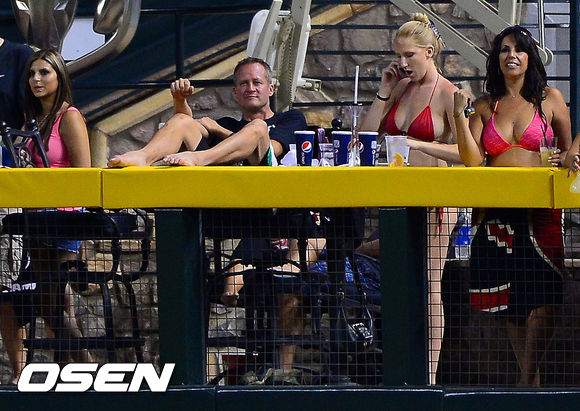 체이스필드 외야에 위치한 수영장에서 야구팬들이 수영복을 입은 채 야구를 관전하고 있다. /soul1014@osen.co.kr