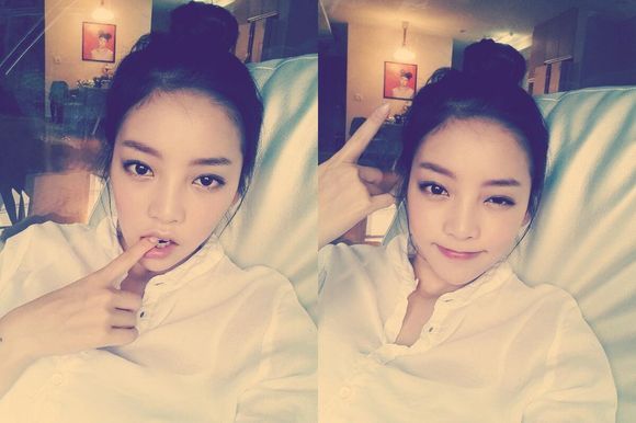 사진 속 구하라는 하얀색 셔츠를 입고, 머리카락을 동그랗게 묶어 올린 채 특유의 인형같은 미모를 뽐내고 있다. 커다란 이목구비와 손가락을 사용한 깜찍한 포즈와 표정이 특별한 매력을 드러내는 모습이다.