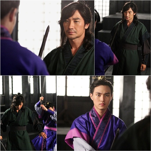 10일 공개된 ‘칼과 꽃’의 스틸컷 속에는 무예스승으로 변신한 연충(엄태웅 분)의 모습이 담겨있다. 연충은 환권(이민호 분)의 태자 책봉을 앞두고 성대하게 개최되는 동맹제 마지막 날 그의 무예시범을 위해 스승이 될 예정이다.
