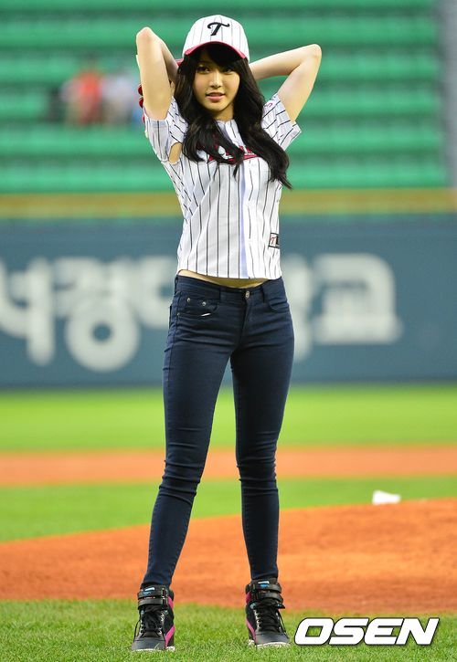 10일 오후 서울 잠실야구장에서 '2013 한국야쿠르트 세븐 프로야구' LG 트윈스 대 NC 다이노스의 경기가 열렸다. 시구자로 나선 걸그룹 걸스데이 유라가 힘차게 와인드업 하고 있다.