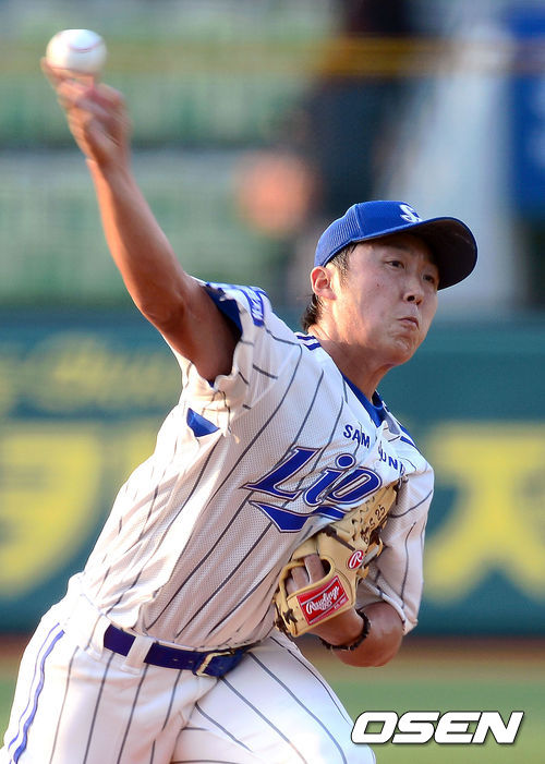 10일 오후 오후 대구 시민운동장에서 열린 '2013 한국야쿠르트 세븐프로야구' 삼성 라이온즈와 SK 와이번스의 경기, 1회초 삼성 배영수가 역투하고 있다.