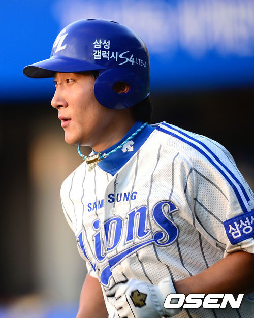 10일 오후 오후 대구 시민운동장에서 열린 '2013 한국야쿠르트 세븐프로야구' 삼성 라이온즈와 SK 와이번스의 경기, 1회말 무사 1루 삼성 배영섭이 박한이의 안타로 득점을 올리고 있다.