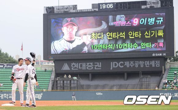 LG 주장 이병규(9번)가 한국프로야구 통산 최다 10연 타석 안타 신기록을 달성했다.