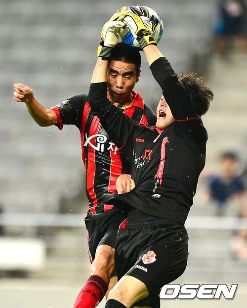 전반 서울 박희성이 광주 김지성 골키퍼와 공중볼을 다투고 있다.