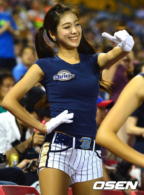 10일 오후 서울 잠실야구장에서 '2013 한국야쿠르트 세븐 프로야구' LG 트윈스 대 NC 다이노스의 경기가 열렸다.NC 치어리더 김연정이 멋진 응원을 선보이고 있다.