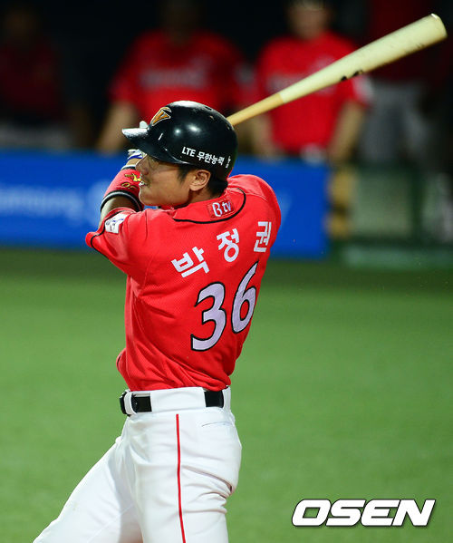 10일 오후 오후 대구 시민운동장에서 열린 '2013 한국야쿠르트 세븐프로야구' 삼성 라이온즈와 SK 와이번스의 경기, 7회초 1사 SK 박정권이 솔로 홈런을 때리고 있다.