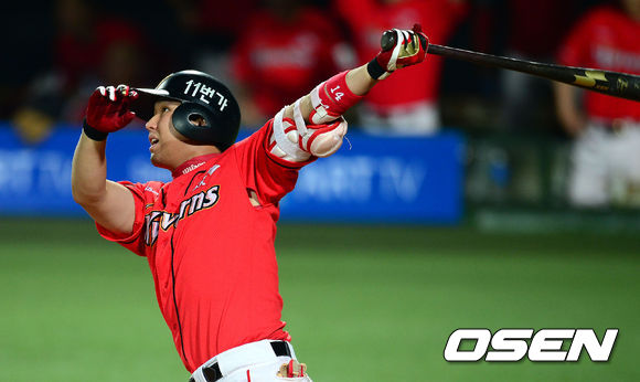 10일 오후 오후 대구 시민운동장에서 열린 '2013 한국야쿠르트 세븐프로야구' 삼성 라이온즈와 SK 와이번스의 경기, 8회초 2사 1,3루 SK 최정이 3점 홈런을 때리고 있다.