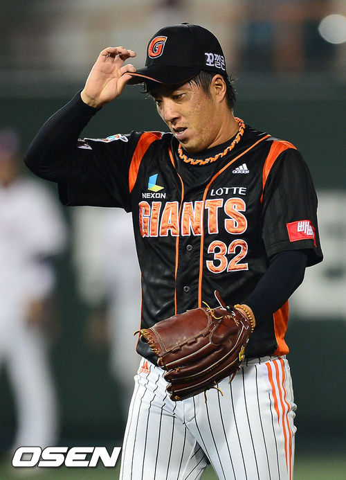 10일 오후 목동구장에서 열린 2013 한국야쿠르트 세븐프로야구 넥센 히어로즈와 롯데 자이언츠 경기, 8회를 마친 롯데 김승회가 덕아웃으로 들어가고 있다.