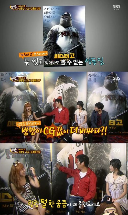 성동일은 10일 방송된 SBS ‘한밤의 TV연예’와의 인터뷰에서 영화 ‘미스터 고’ 주인공인 고릴라 링링보다 자신의 출연료가 적다고 밝혔다.