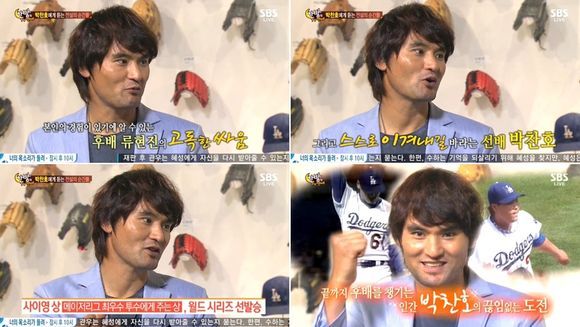 박찬호는 10일 방송된 SBS '한밤의 TV연예'에 출연해 "류현진이 얼마 전에 굉장히 외롭다고 그랬다. 겉으로는 화려해 보여도 그 속에서 외로워도 하고 갈등도 한다. 이겨내려고 노력을 많이 해야 한다"고 말했다.