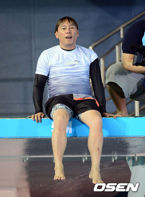 SBS '일요일이 좋다-맨발의 친구들' 출연진이 7월11일 경북 김천시 산락동 김천실내체육관에서 열린 '제1회 김천 국제 마스터스 다이빙 대회'에 참가했다.