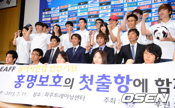 대한축구협회는 11일 파주 NFC에서 기자회견을 열고 오는 20일부터 열리는 2013 동아시아축구연맹(EAFF) 동아시안컵에 출전할 23명의 명단을 발표했다. 홍명보 감독은 이날 기자회견에 참석해 동아시안컵을 향한 포부와 선수들의 선발 배경을 밝혔다.