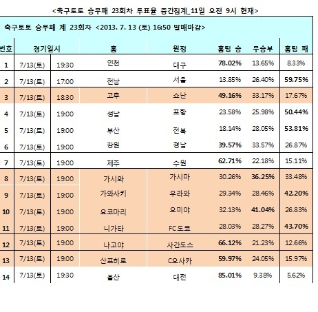 축구토토 승무패 23회차 투표율 중간집계 결과