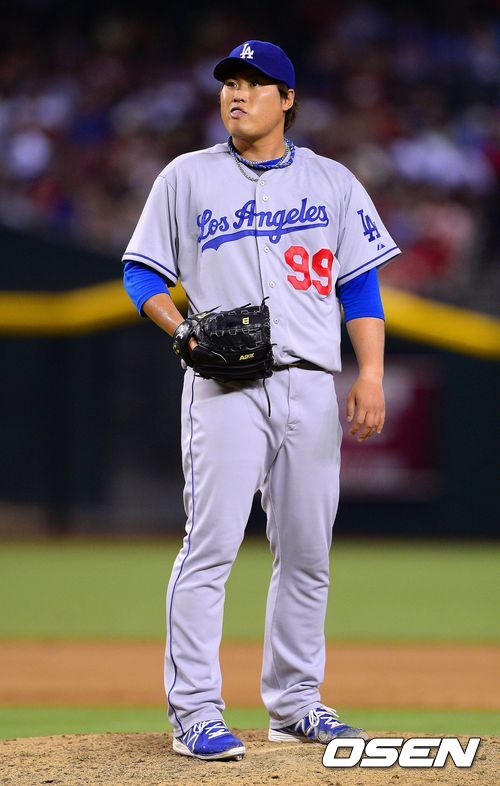 11일(한국시간) 미국 애리조나 피닉스 체이스필드에서 열린 2013 MLB 애리조나 다이아몬드백스와 LA 다저스의 경기 5회말 3실점하며 역전을 허용한 류현진이 아쉬워 하고 있다.