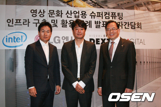 11일 오전 여의도 CGV영화관에서 인텔코리아와 LG엔시스, 덱스터디지털은 3사 공동 기자간담회를 갖고, 평균 80만개가 넘는 주인공 고릴라 ‘링링’의 털을 묘사하는 고난이도의 컴퓨터 그래픽(CG)기술이 적용된 영화 ‘미스터고(Mr.Go)’ 제작에 활용된 한국 최대 영상 산업 전용 클라우드 기반의 슈퍼컴퓨터 인프라와 적용 사례를 발표했다.