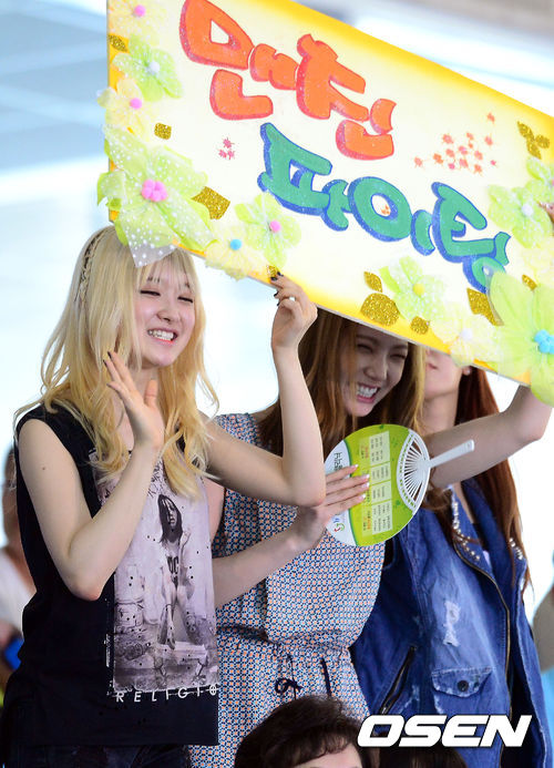애프터스쿨 멤버들이 동료인 유이를 응원하기 위해 경기장을 찾아 응원을 하고 있다.